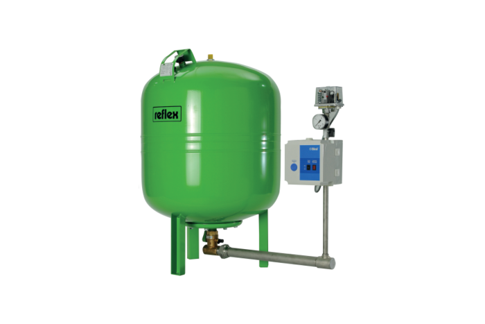 Druckerhöhungsanlage mit einer Tauchmotorpumpe (AquariA), einem grossem Membrandruckbehälter, einem Druckschalter und einer Steuerung.